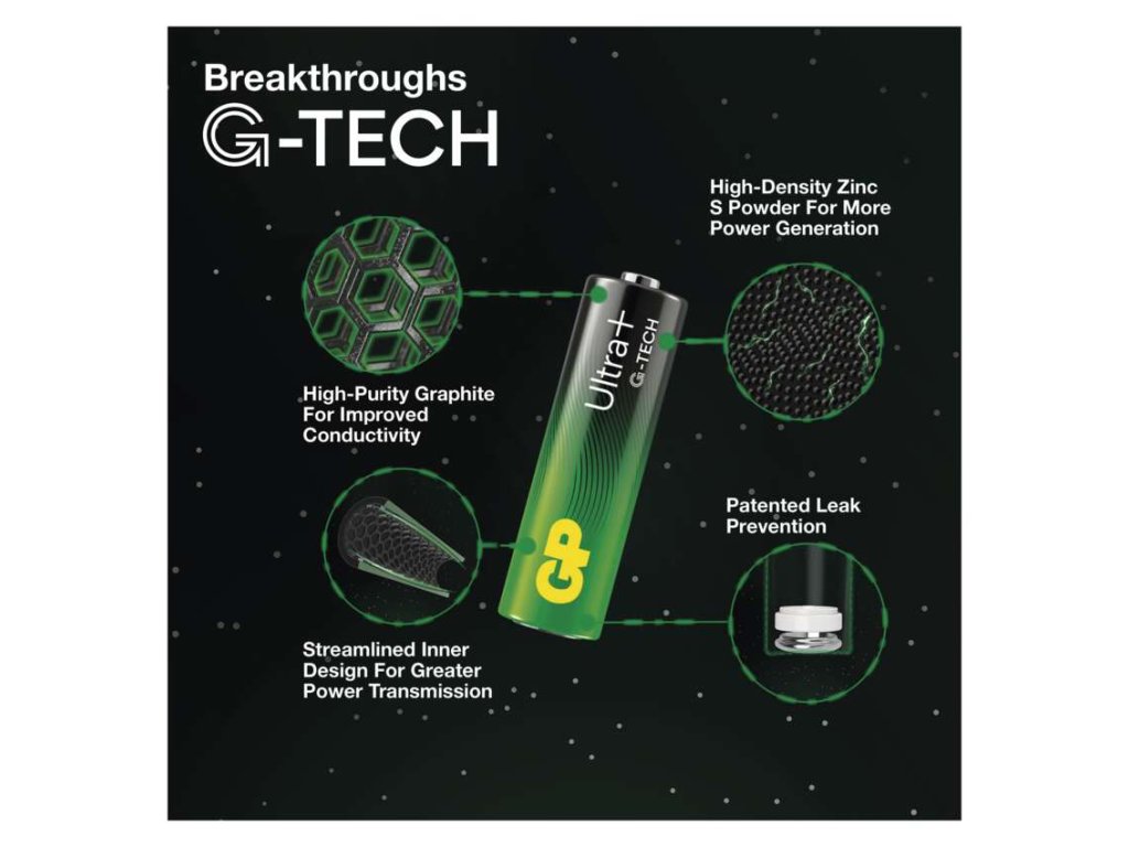 Čtyři silné průlomové změny byly provedeny zevnitř, včetně delší výdrže energie a silnější těsnosti. Technologie G-TECH se skládá z práškového zinku nové generace s vysokou hustotou, který zajišťuje rychlé a robustní generování energie a lepší výkon. Vícekroužkové jádro s vysoce čistým grafitem zvyšuje elektrickou vodivost a zajišťuje tak delší výdrž energie. Zefektivněná vnitřní konstrukce zvětšuje reakční plochu uvnitř baterie a přenos energie uvnitř článku. Patentovaná technologie prevence proti vytečení zabraňuje úniku energie z baterie a účinně ji uzamyká.