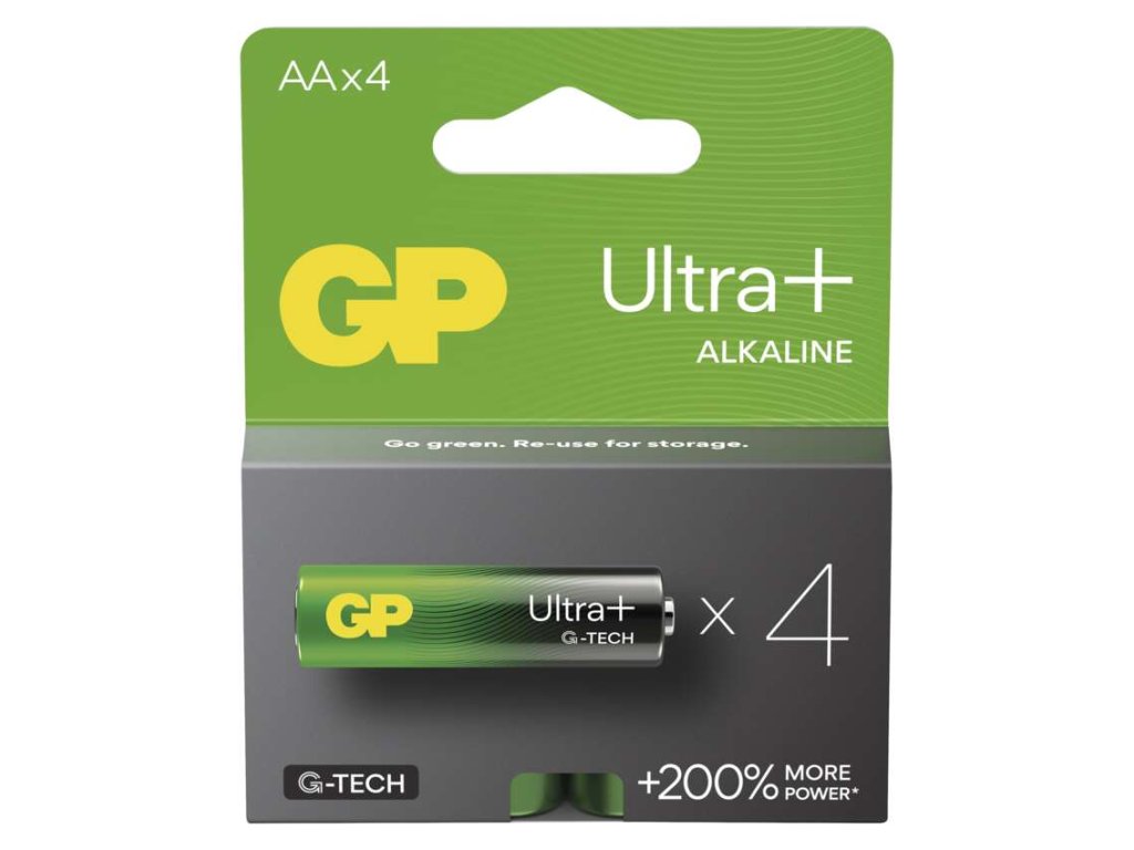 Nová řada baterií GP Ultra plus nabízí širokou škálu všech velikostí, včetně AA, AAA, C, D a 9 V, takže jsou vhodné pro všechny druhy elektronických přístrojů, které potřebují baterie.