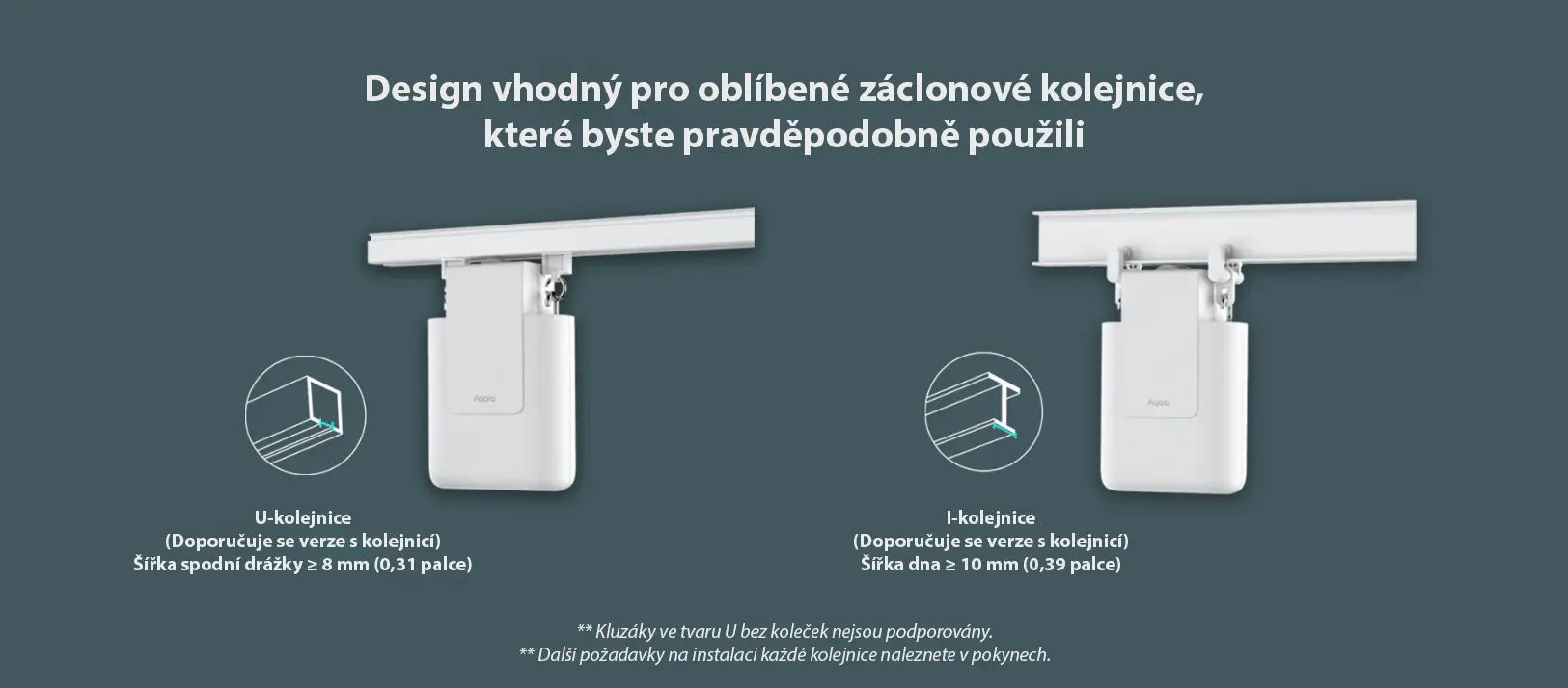 Instalace je rychlá a bez zásahů do závěsů. Zařízení stačí zacvaknout na kolejnici, spárovat s aplikací Aqara Home a nastavit počáteční a koncové polohy. Podporuje většinu kolejnic na trhu – verze Track je určená výhradně pro kolejnice typu U a I.