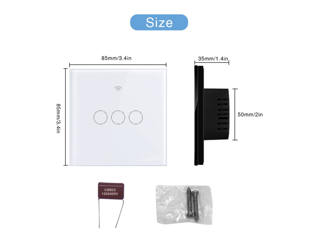 Dotykový / Wi-Fi vypínač osvětlení, který je možné ovládat přes WiFi z aplikace eWeLinkTento vypínač nepotřebuje v instalační krabici "nulový" vodič. Proto je vhodný do starších rozvodů, kde se do krabic vedla jen přerušená fáze. K uzavření okruhu a tím k napájení vypínače dochází pomocí malého adaptéru, který je nutné umístit do nebo poblíž světla (tam, kde je i fáze i nula).Rozměry adaptéru jsou 18 x 20 x 10 mmSpecifikaceStandard: EU90-250V ACMax. Proud: 2AMax. Příkon: 500WBarva: Bílá / Černá zadní stranaWiFi Standard: 802.11 b/g/nWiFi zabezpečení: WPA-PSK/WPA2-PSKMaterial: ABS V0 (odolný vůči hoření) + Dotykový panel z tvrzeného sklaKanálů: 1Rozměry: 86 x 86 x 32 (mm)Doplňkové parametry