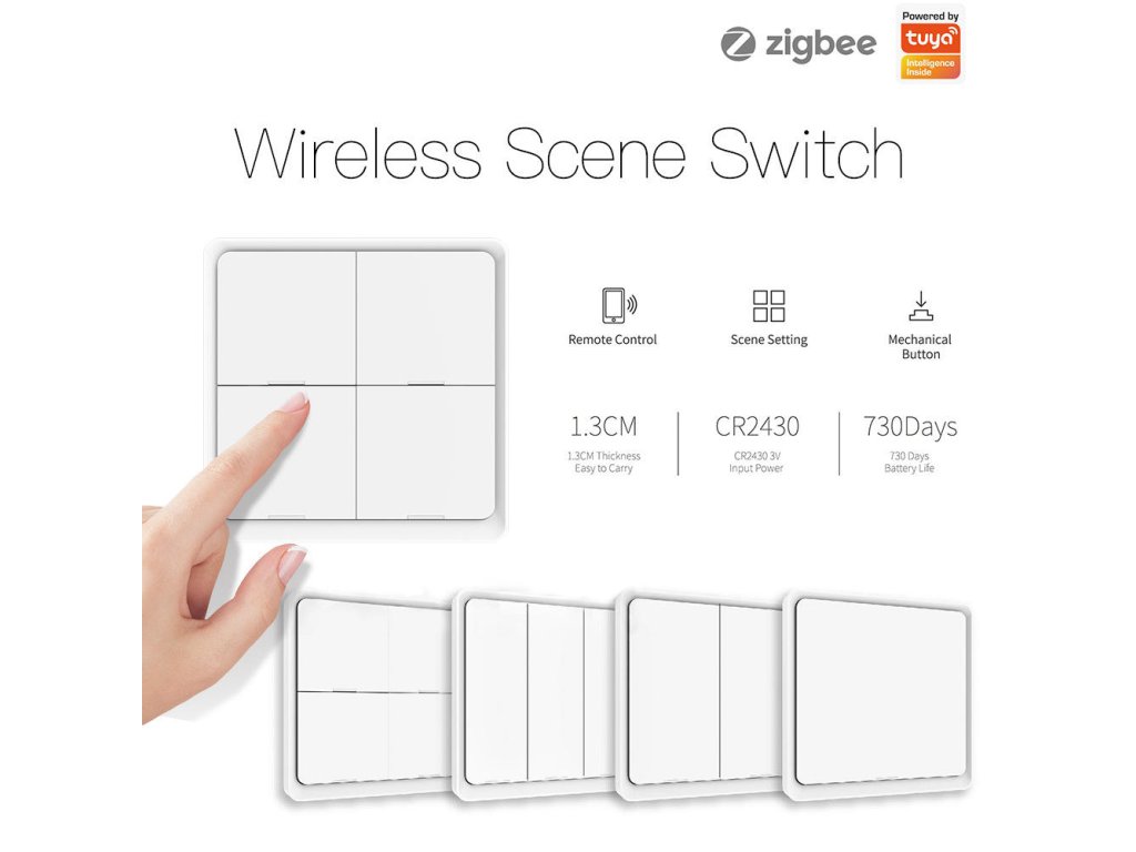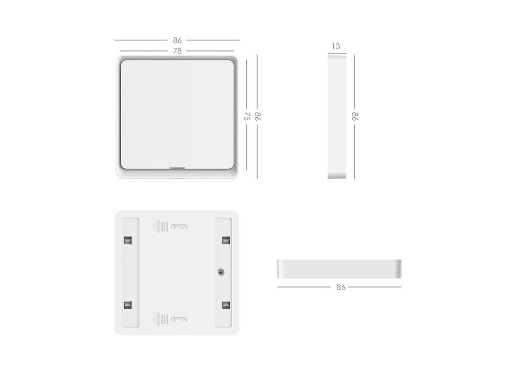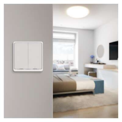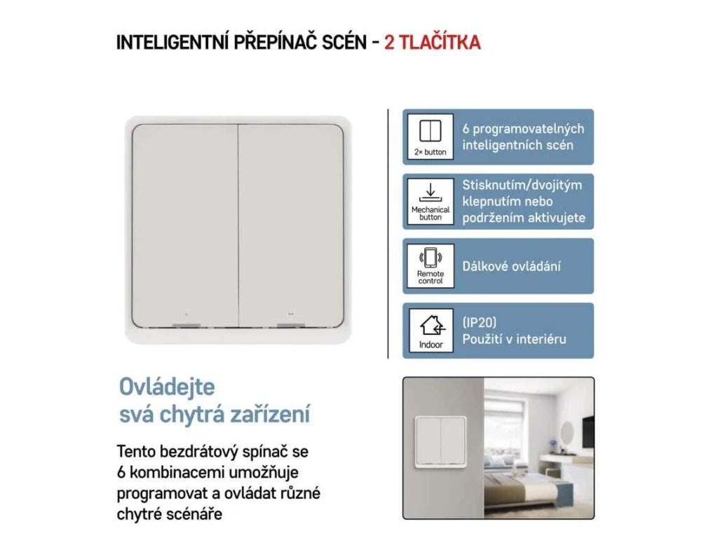 - 2-tlačítkový ovladač scén – ideální pro ovládání dvou samostatných zařízení nebo skupin světel.