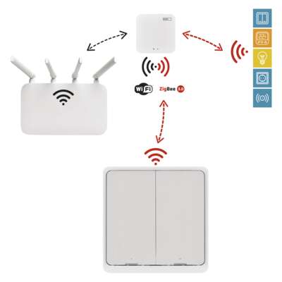 GoSmart Přenosný ovladač scén IP-2002ZW je dvoutlačítkový chytrý ovladač, který vám umožní ovládat světla, žaluzie nebo spouštět různé scény ve vaší chytré domácnosti. Komunikuje přes ZigBee 3.0 a díky bateriovému napájení ho můžete umístit kamkoliv – na stěnu, nábytek nebo používat jako přenosné dálkové ovládání. Každé tlačítko podporuje tři typy akcí, takže získáte až šest scénárů pro rychlé ovládání celé domácnosti.
