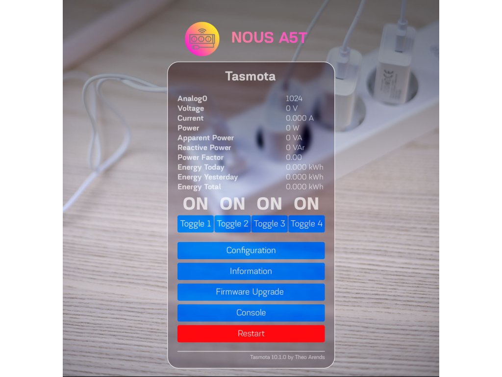 Nous A5T WiFi Smart Prodlužovačka s Tasmota firmwarem