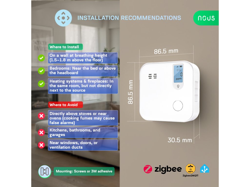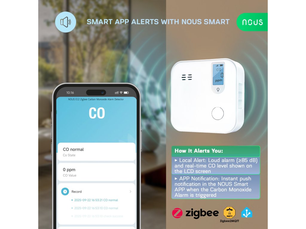 | Model | Nous E12 Zigbee CO Detector |