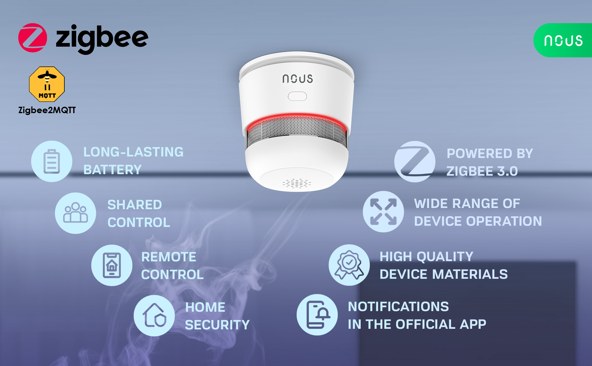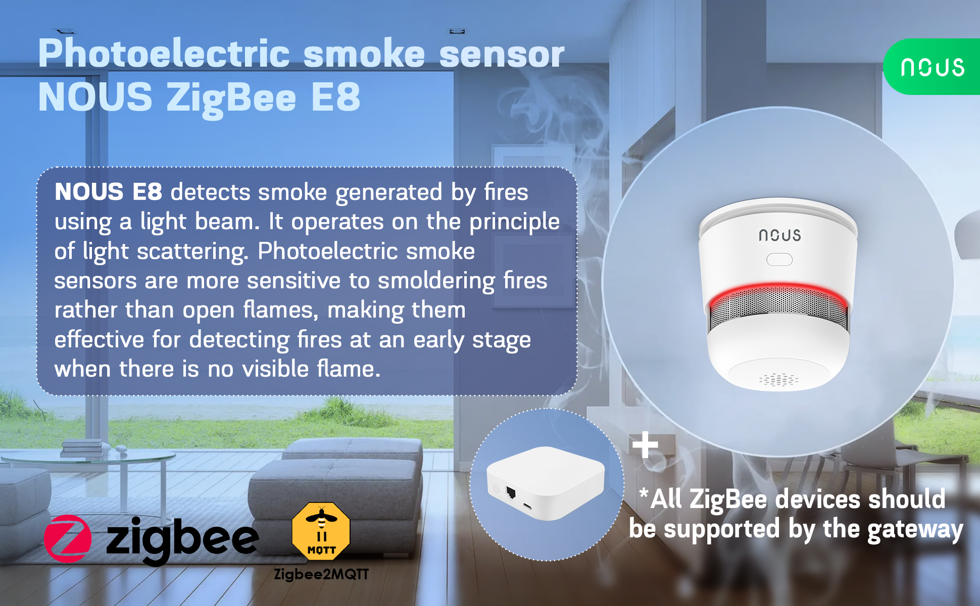 - Nous E8 ZigBee kouřový senzor