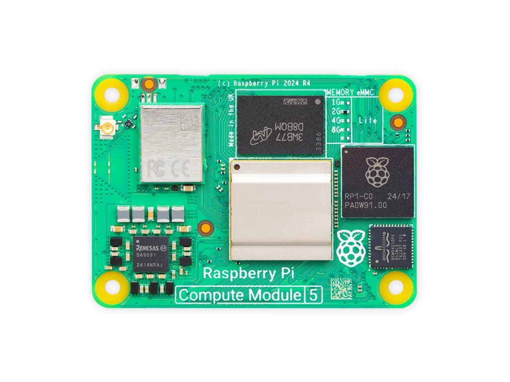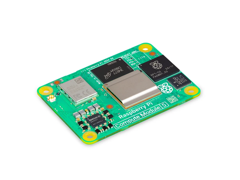 - Raspberry Pi Compute Module 5 – 16 GB RAM, Lite, Wi-Fi a Bluetooth