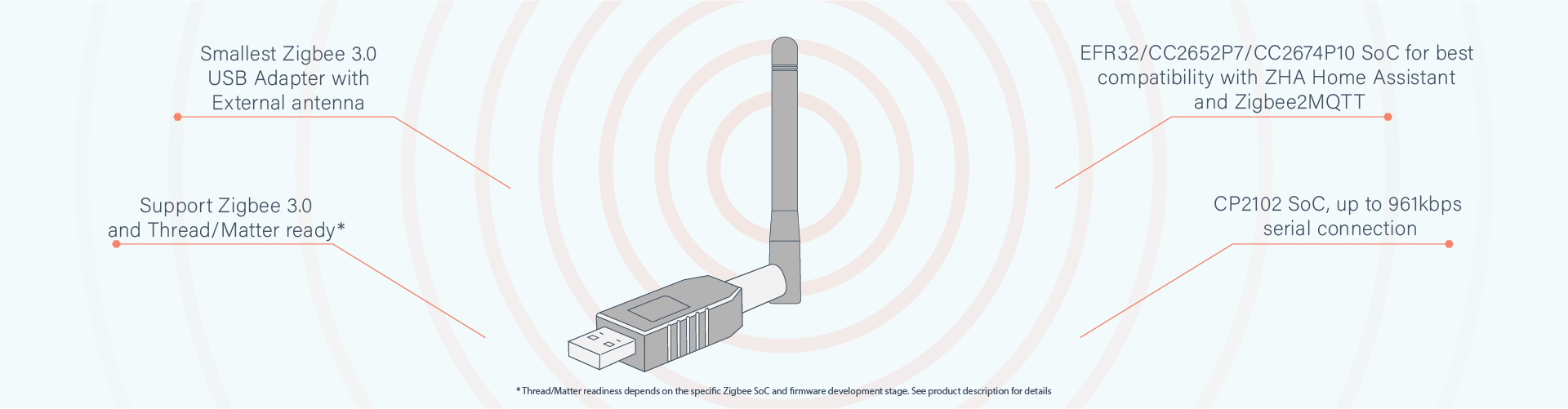 Adaptér spolupracuje s širokou škálou Zigbee zařízení (senzory, vypínače, relé, zásuvky, světla) od značek jako Aqara, Sonoff, Tuya, IKEA, Philips, Lidl a další. Konkrétní podporu vždy ověřte v dokumentaci použité platformy (Zigbee2MQTT / ZHA).
