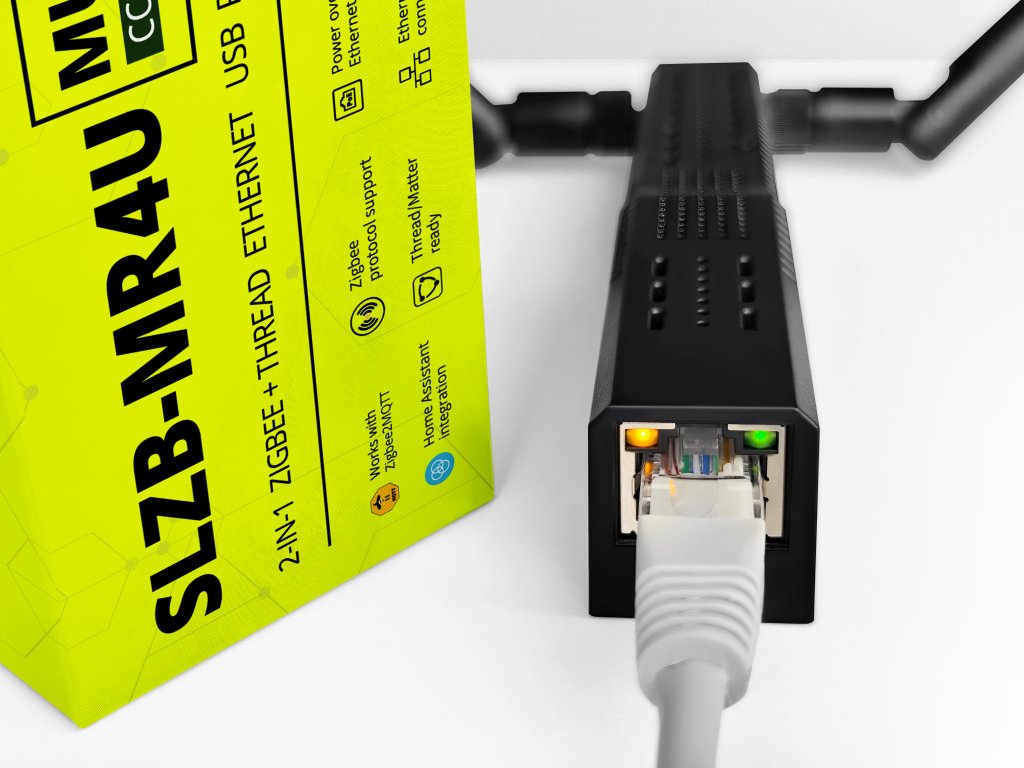 Zařízení podporuje LAN, Wi-Fi a USB, přičemž pro dlouhodobý stabilní provoz dává největší smysl Ethernet. Síťové připojení odpojuje koordinátor od fyzické polohy serveru a umožňuje postavit infrastrukturu praktičtěji. V systému Home Assistant pak zařízení typicky vystupuje jako síťový Zigbee koordinátor pro Zigbee2MQTT nebo ZHA a současně jako základ pro Thread infrastrukturu přes OpenThread Border Router.