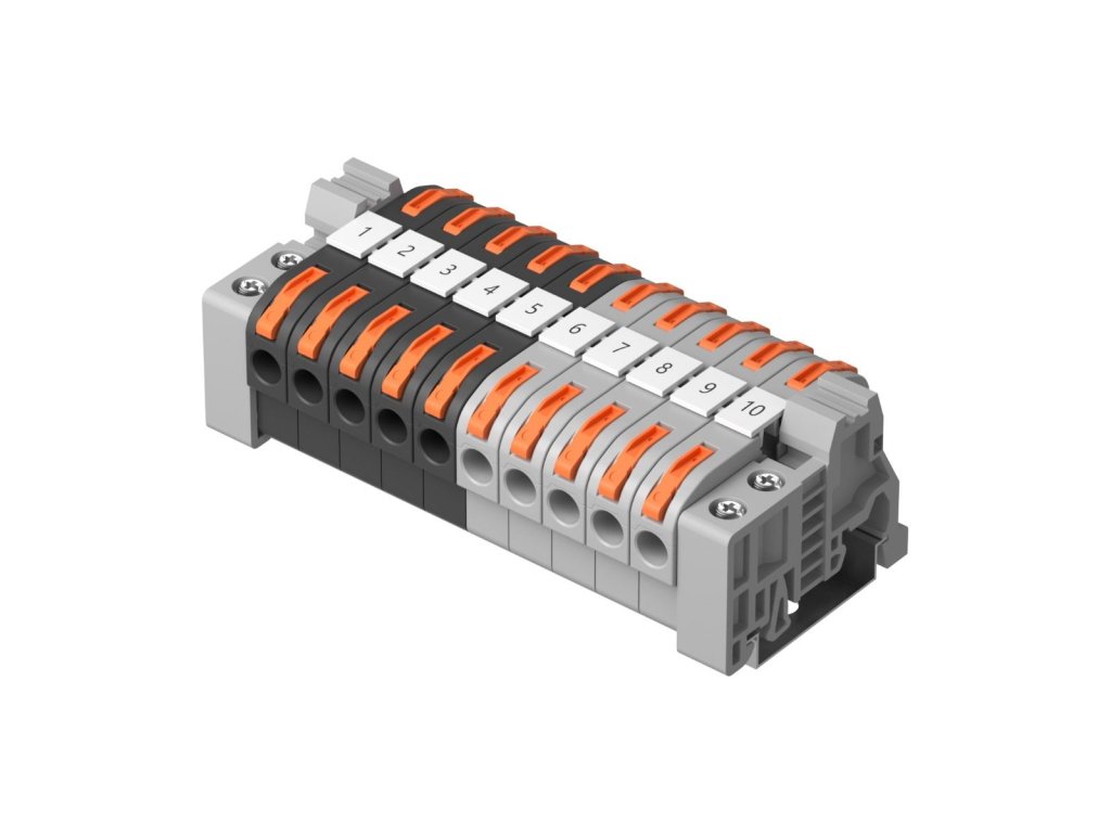 - Rychlá a snadná instalace: Díky patentovanému designu nepotřebujete zdlouhavé šroubování, stačí zvednout oranžovou páčku, vložit vodič a páčku opět sklopit.