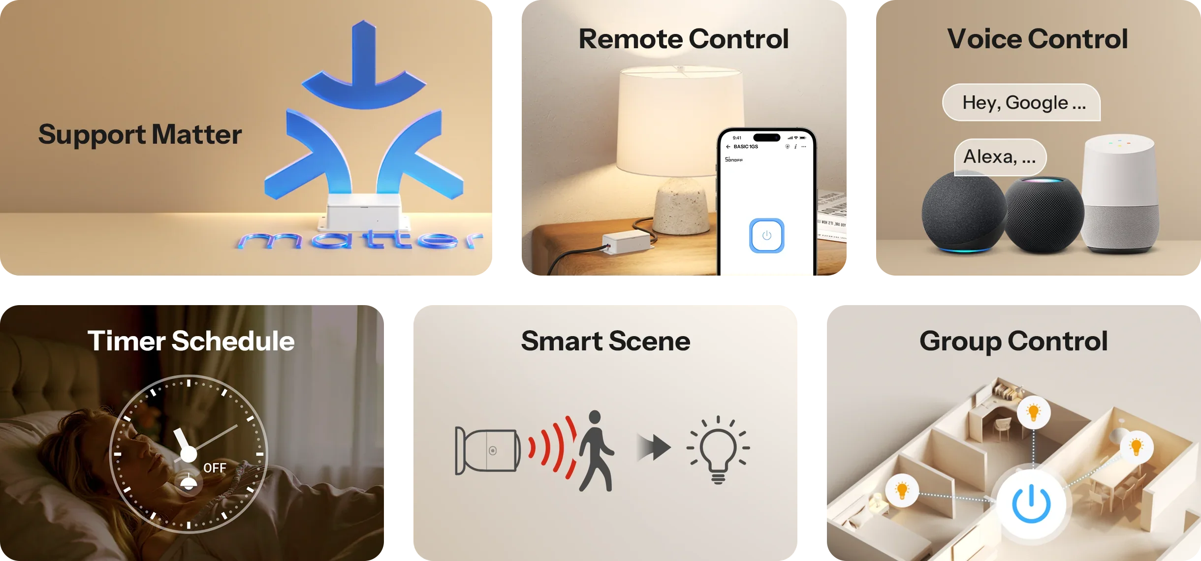Integrace | eWeLink, Apple Home / Google Home / Alexa / SmartThings (přes Matter) |