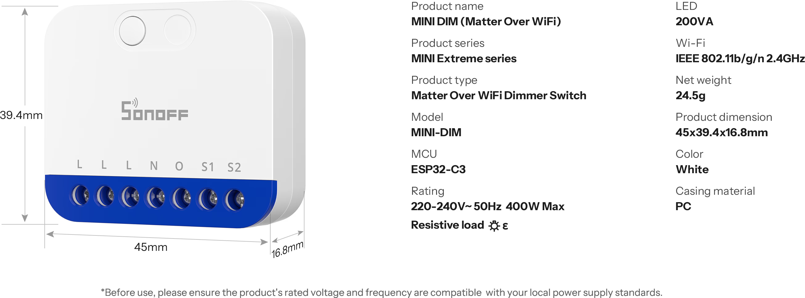 Sonoff MINI-DIM MINI Extreme chytrý WiFi stmívací modul s podporou Matter