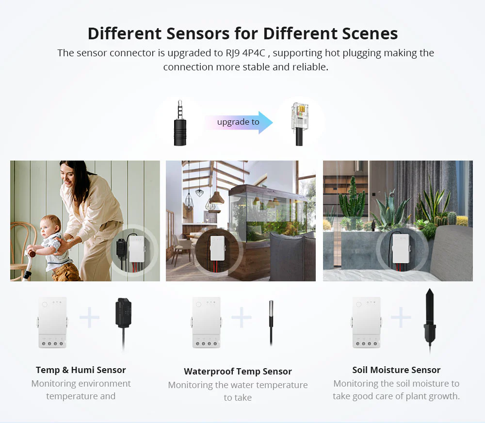 Sonoff THR316 TH Origin podporuje několik typů senzorů, které pokrývají většinu scénářů chytré domácnosti: