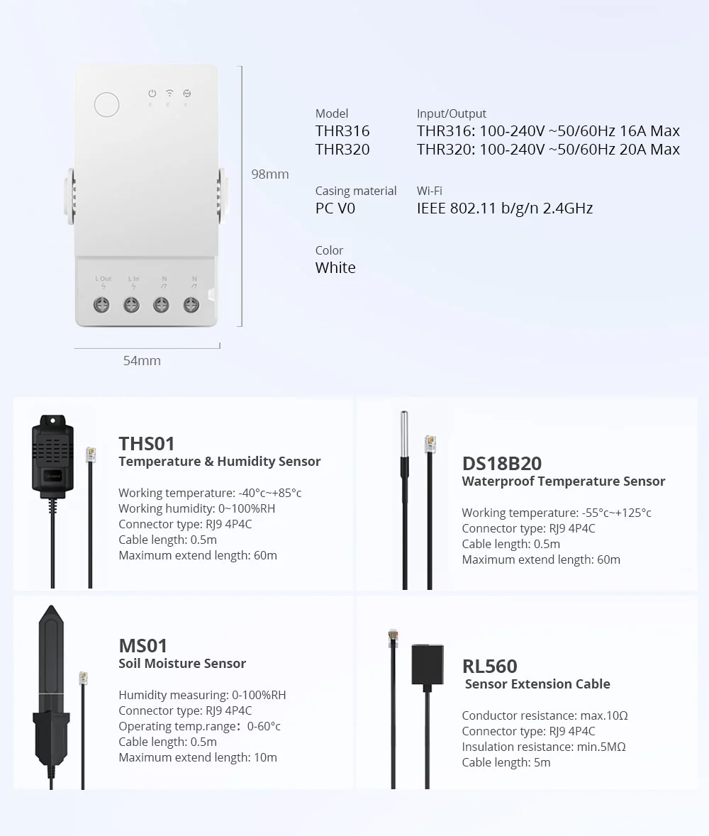 - 1× Sonoff THR316 TH Origin WiFi spínač