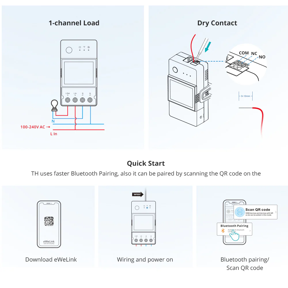 - Manuální ovládání – přímé zapnutí/vypnutí tlačítkem na čelním panelu nebo v aplikaci eWeLink.