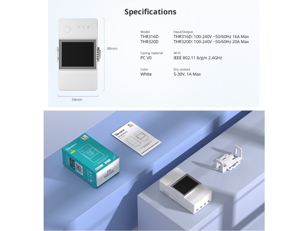 Sonoff THR316D TH Elite WiFi Termostat / Spínač s měřením Teploty a Vlhkosti 16A