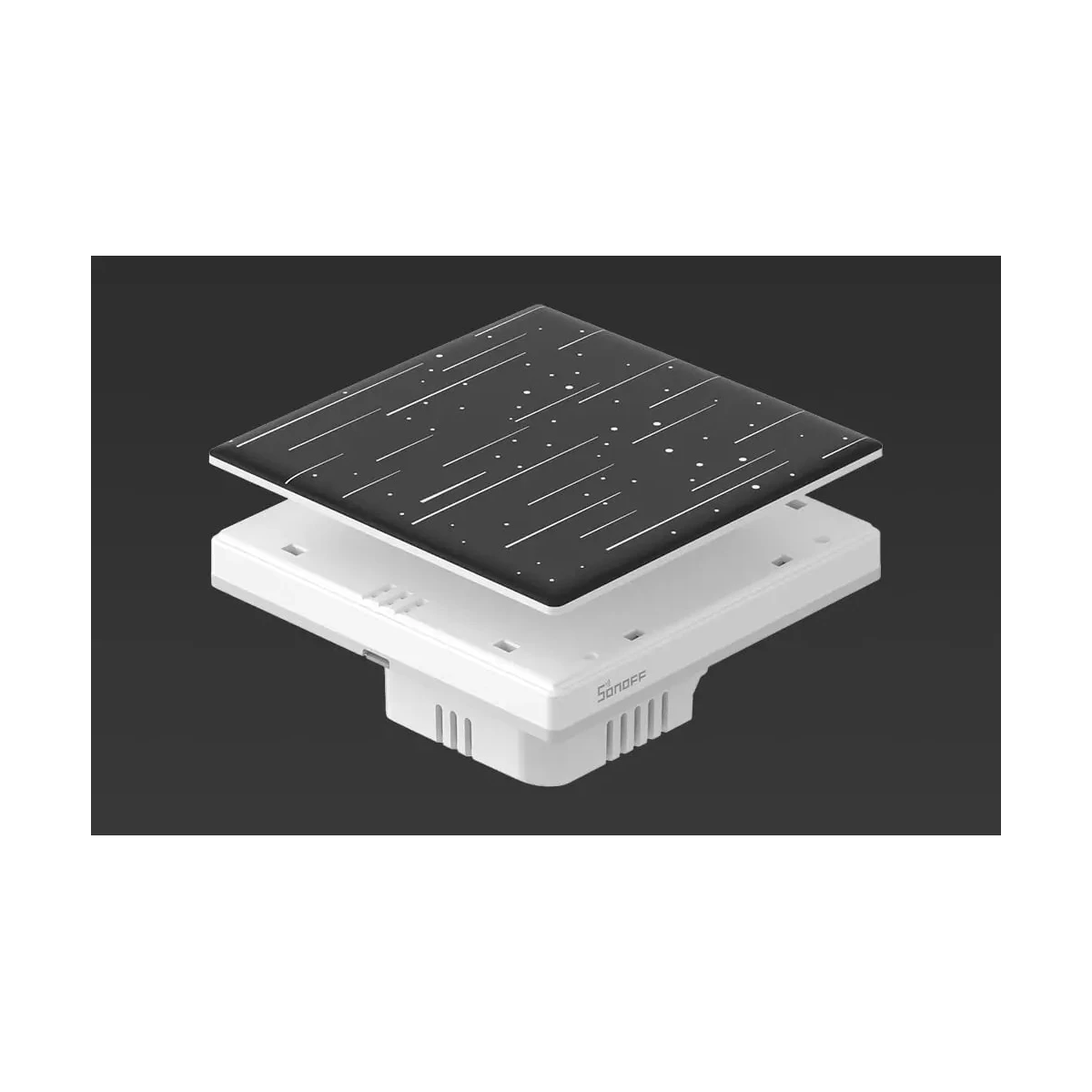 Tento produkt je pouze kryt (přední panel). Neobsahuje elektroniku ani dotykový modul. Pro plnou funkčnost je nutné mít odpovídající chytrý vypínač Sonoff TX Ultimate T5, který se prodává samostatně.