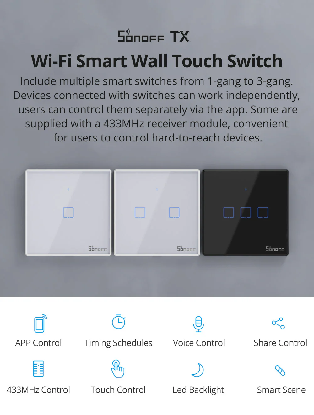 - Moderní vzhled, který ladí se sérií Sonoff TX.