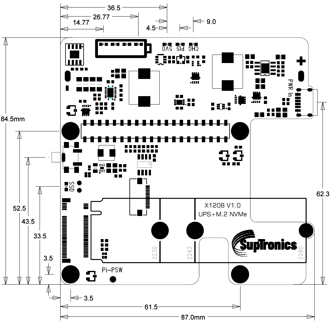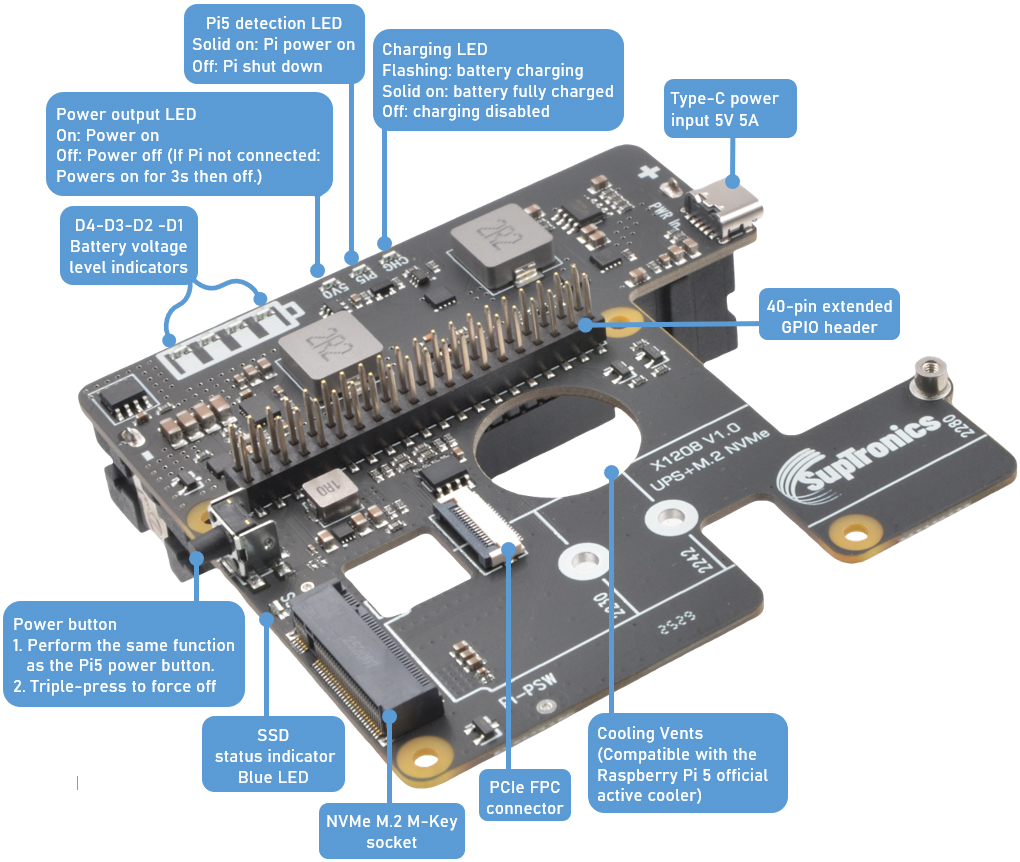 Suptronics X1208 UPS 21700 + 2280 M.2 NVMe shield pro Raspberry Pi 5