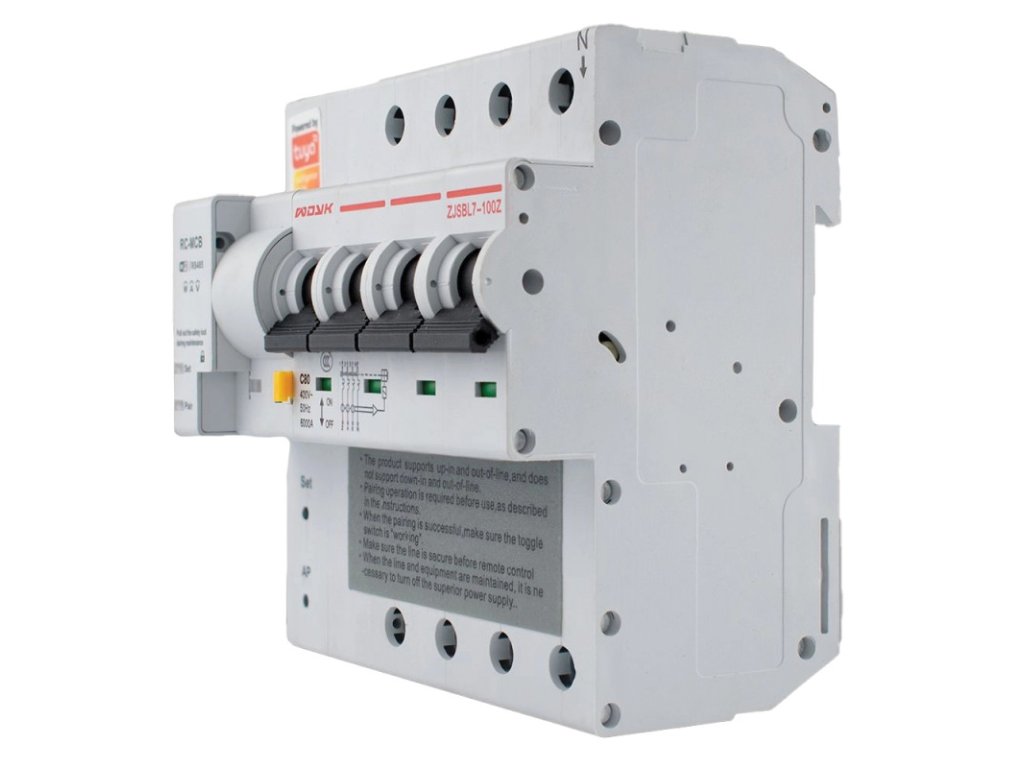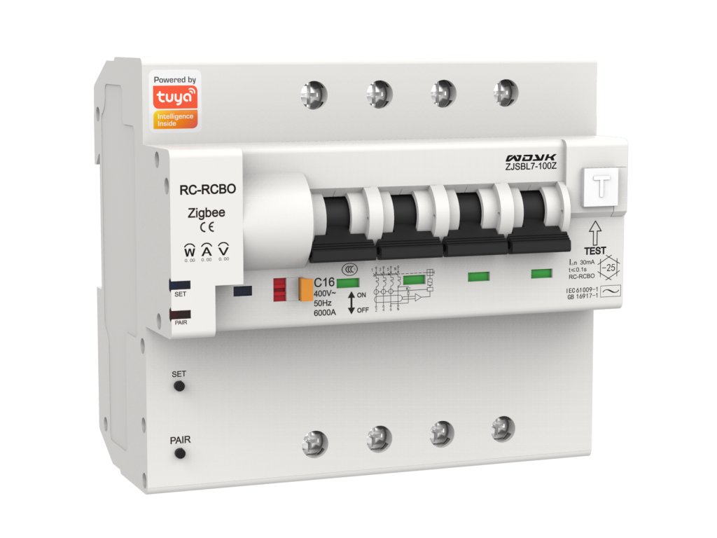 - 4P, 10–100A (nastavitelný v Tuya), integrovaný proudový chránič s testem.
