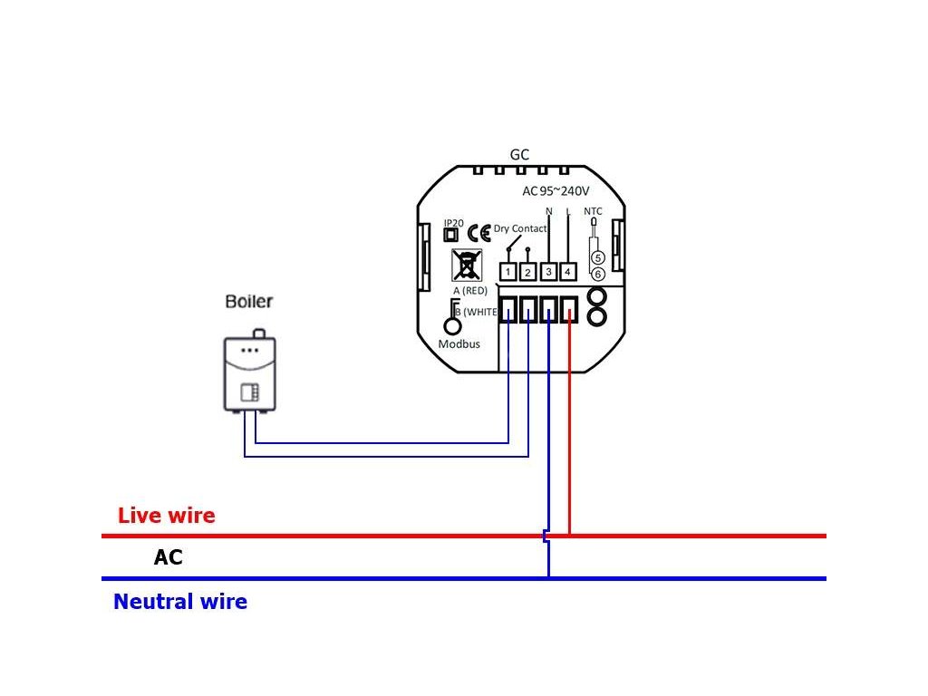 Zadní strana termostatu nabízí přehledné svorky pro snadné zapojení: