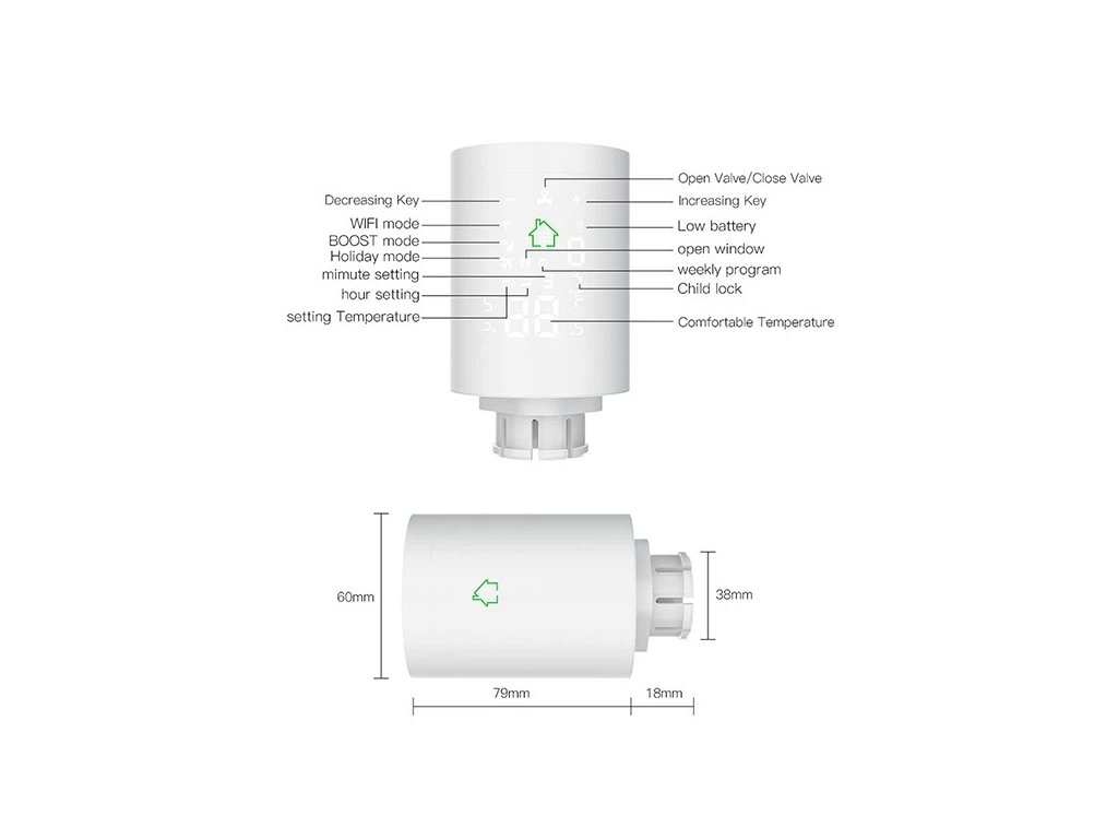 VAREO HY368 je chytrá termostatická hlavice pro radiátorové vytápění. Montuje se přímo na termostatický ventil radiátoru a reguluje průtok topné vody tak, aby udržela nastavenou teplotu v místnosti podle programu nebo ručního nastavení.