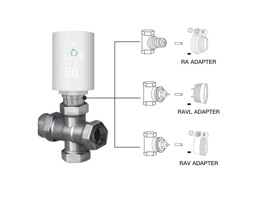 - Součástí příslušenství jsou adaptéry pro běžné typy ventilů RA, RAV, RAVL.